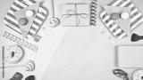 Colorful pink theme birthday party flat lay with snack, balloons, lollipops and gifts with negative copy space.
