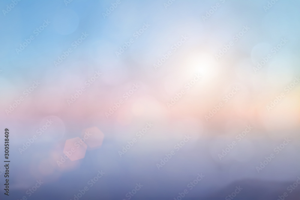 Natural background blurring warm colors and bright sun light. Bokeh or Christmas background Green Energy at sky sunny color orange light patterns plain abstract flare evening clouds blur.