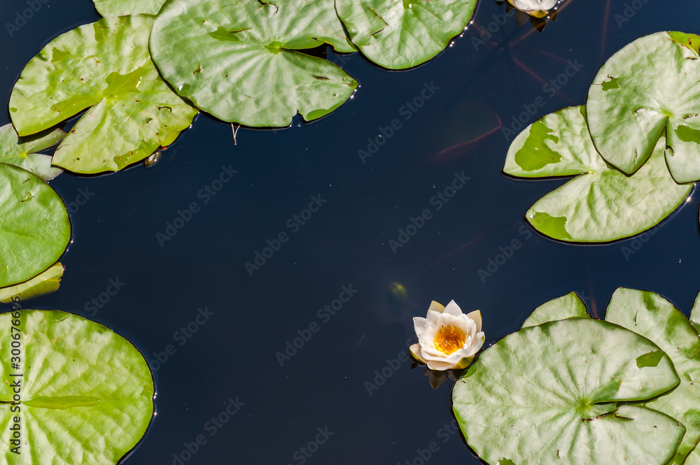 Landscape with water lily on lake