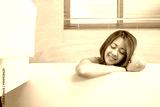 Portrait of young attractive asian girl takes a bath with candles relax in the bathroom. Beauty woman in spa treatments. Healthy perfect glow skin care concept