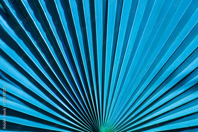tropical palm leaf and shadow, abstract natural green background, dark blue tone