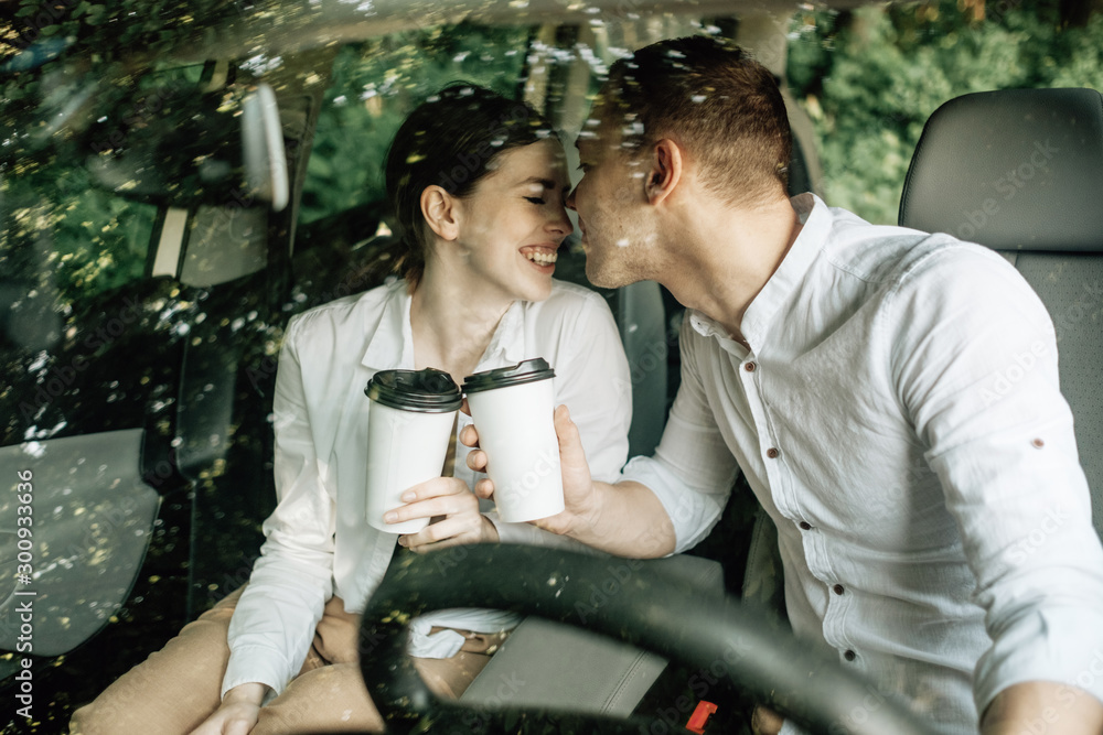 Happy Traveling Couple Together Enjoying Road Trip, Vacation Concept, Holidays Outside the City, Two Cheerful People