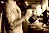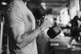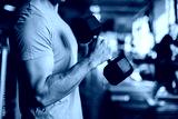 authentic image, detail close up of fit coach man lifting weight, training bicep curl in the gym. concept of weight loss and healthy living.