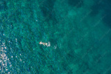 Bright blue-turquoise surface of the sea with a lone diver. Shooting from a drone.