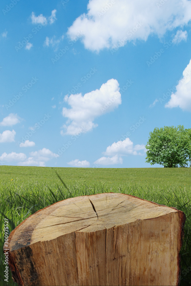 Table en bois arrière-plan nature, espace pour du texte et pour mise en avant de produit