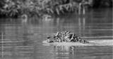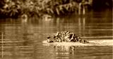 Jaguar is floating on the river. South America. Brazil. Pantanal National Park.