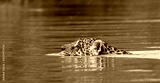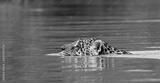 Jaguar is floating on the river. South America. Brazil. Pantanal National Park.