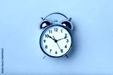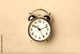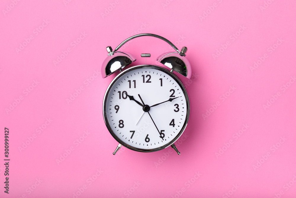 Retro alarm clock on bright pink background