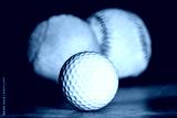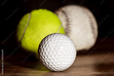 Three Balls for Sports, Golf, Tennis and Baseball, wooden Table