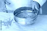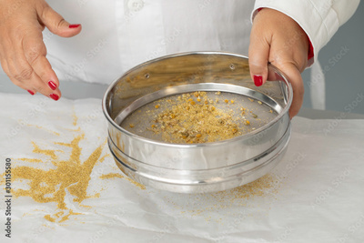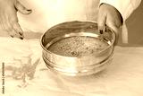 Woman sifting chamomile close up
