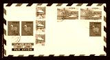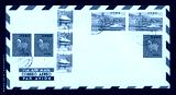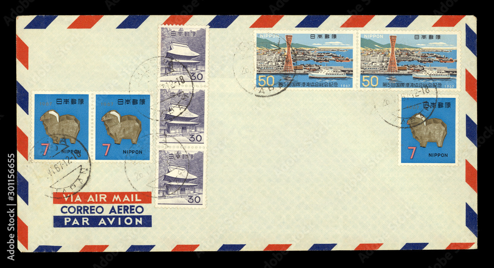 Luftpost airmail Japan Nippon vintage retro alt old 1967 Briefmarken stamps gestempelt Schaf Widder Hafen Port Tempel Shrine Post Brief