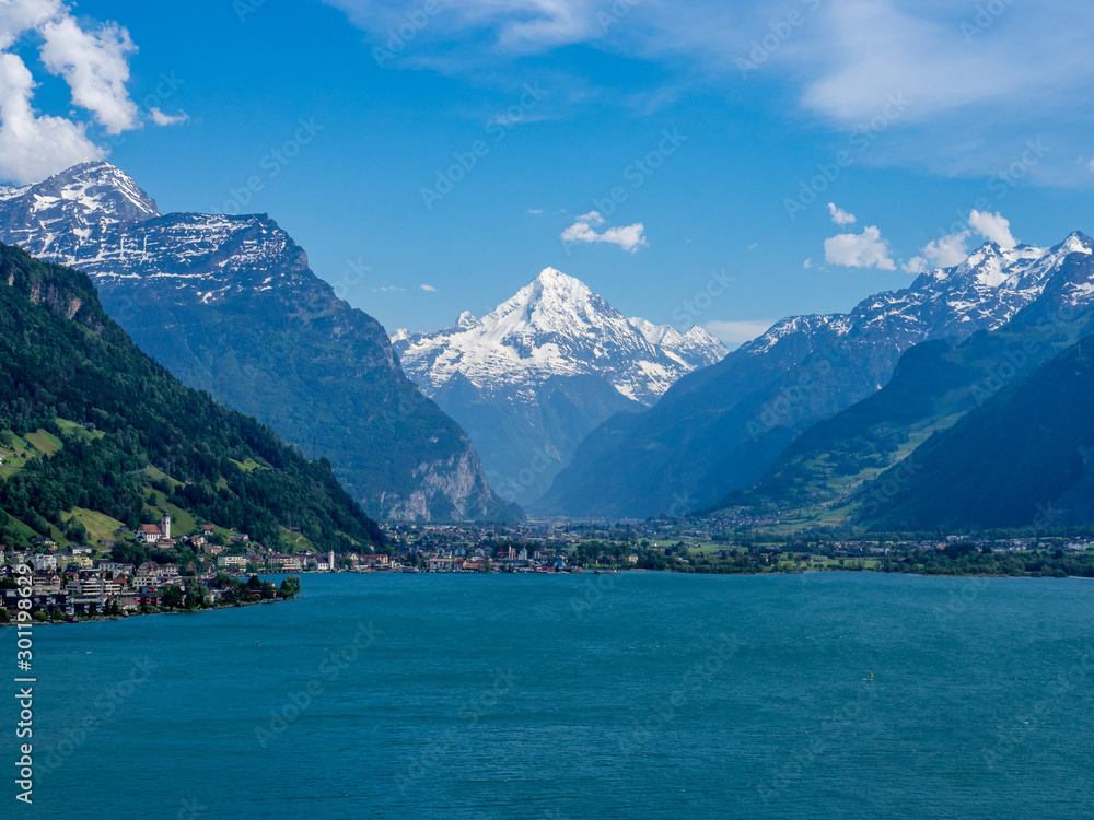 blick auf einen see mit bergen (alpen) (altdorf schweiz)