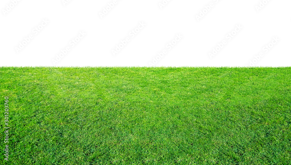 Green grass meadow field from outdoor park isolated in white background with clipping path. Outdoor countryside meadow nature. Landscape of grass field in public park.