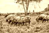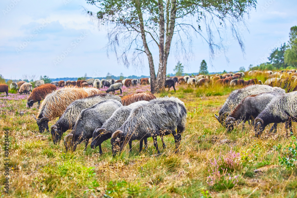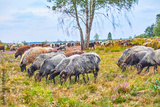 Schafherde in der Lüneburger Heide (Deutschland) der berühmten "Heidschnucken"