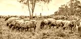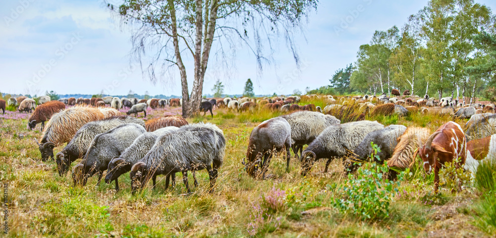 Schafherde in der Lüneburger Heide (Deutschland) der berühmten "Heidschnucken"