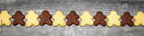 white and black men shape cookies in a line, concept intercultural and friendship symbol