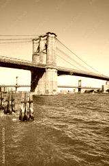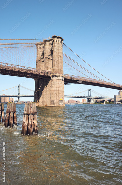 Brooklyn Bridge and East River on a sunny day, NYC.