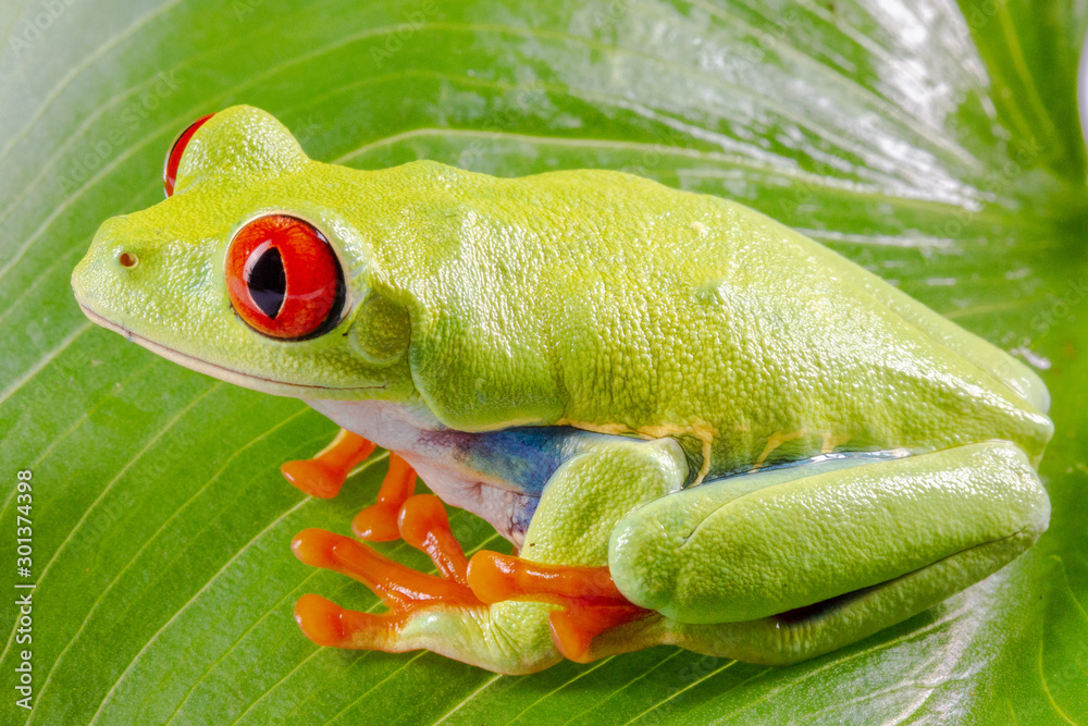 Red Eyed Tree Frog, Agalychnis Callidryas, on a Leaf with Black Background