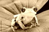 Red Eyed Tree Frog, Agalychnis Callidryas, on a Leaf with Black Background
