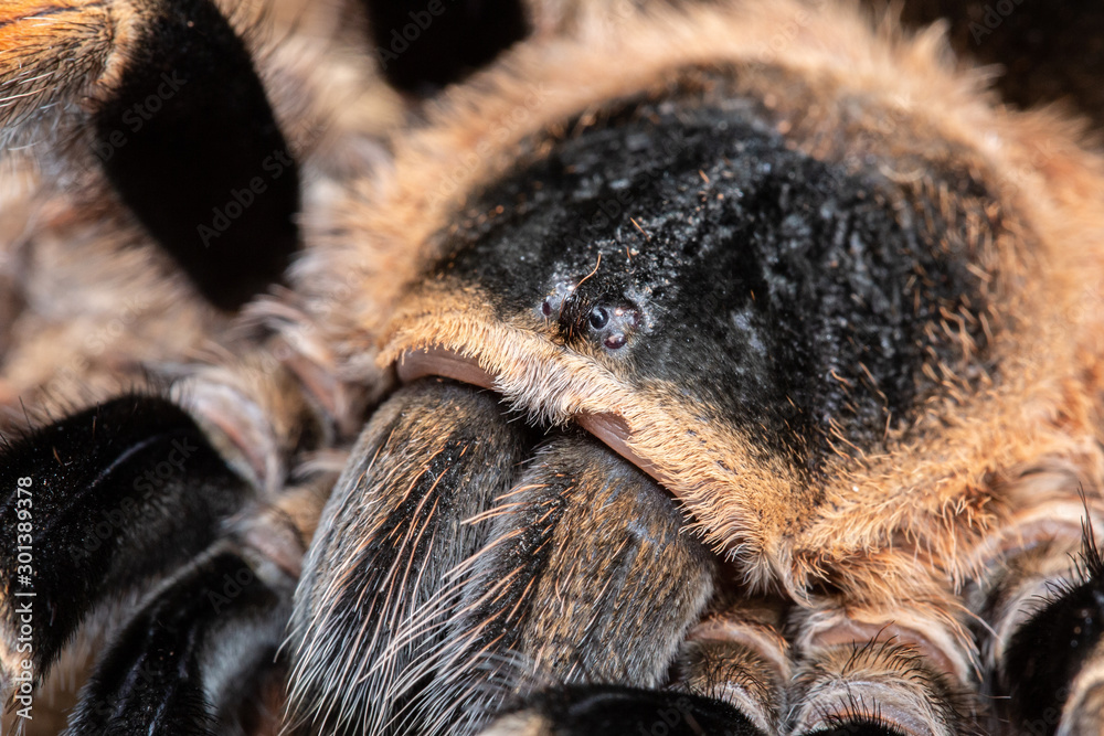 Mexican Red Knee Tarantula, Brachypelma hamorii, on a piece of cork bark