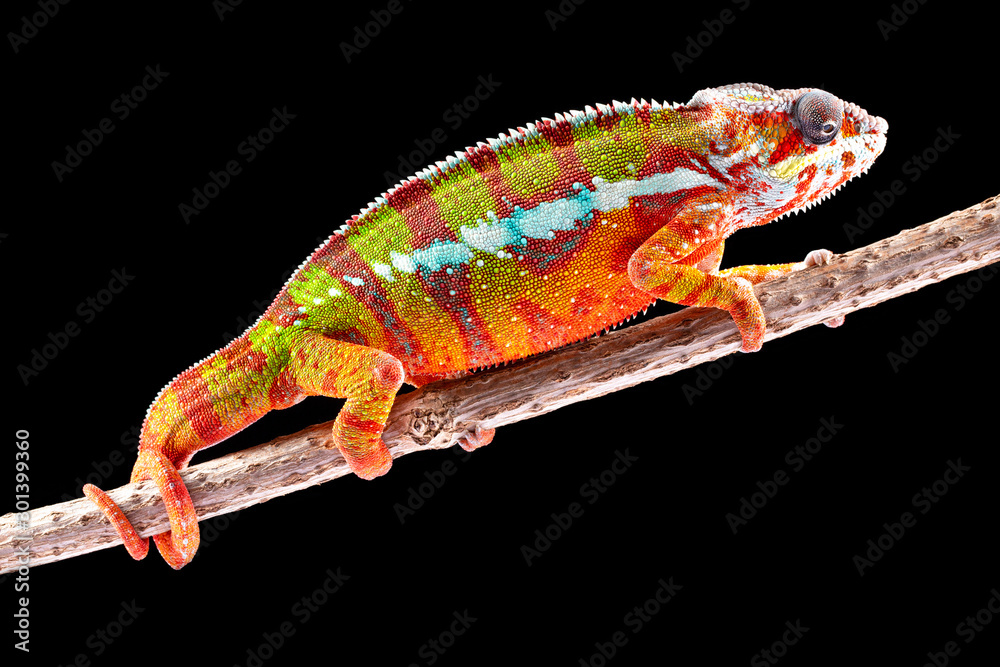 Panter Chameleon, furcifer pardalis, photographed on a plain background