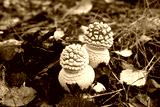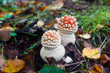 Beautiful little poisonous fly agarics in the forest. Close-up