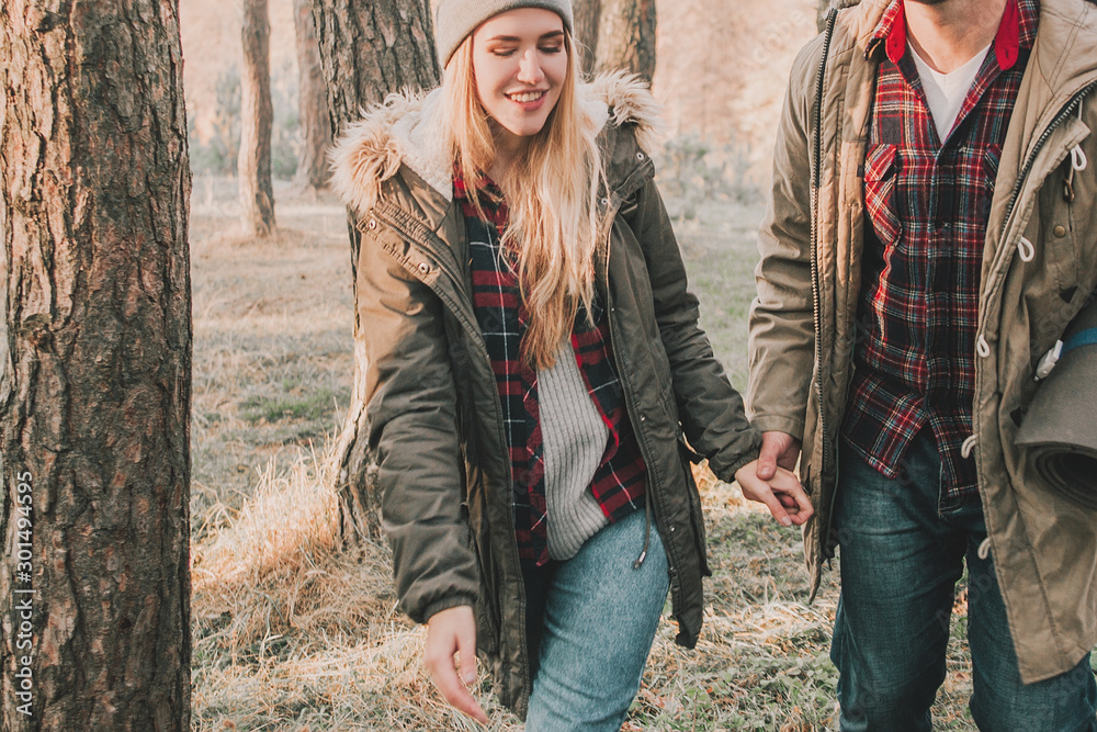 Traveler couple exploring highlands. Freedom and active lifestyle concept.