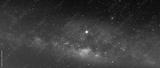 Panorama blue night sky milky way and star on dark background.Universe filled, nebula and galaxy with noise and grain.Photo by long exposure and select white balance.Dark night sky.