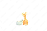 Beautiful white ceramic mortar and pestle Isolated on a white background, for fine grinding