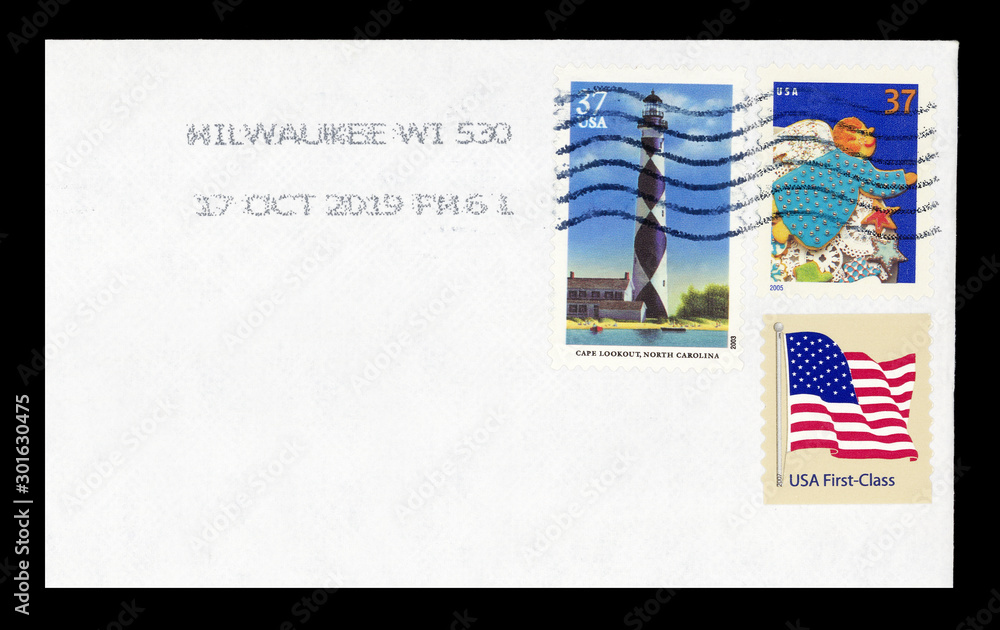 Luftpost airmail retro vintage Umschlag envelope Briefmarke stamp gestempelt USA Amerika Christmas cookie Leuchtturm Cape Lookout North Caroliner US Flag Engel Kekse