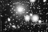 Merry Christmas Frosty winter christmas night - magic light fairy lights on a snowy background in forest during a snowstorm and in during the moon fairy