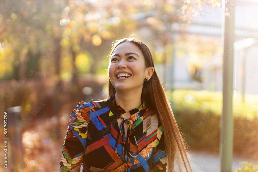 Attractive and happy young woman outdoors