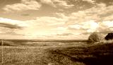 landscape with wheat field and blue sky