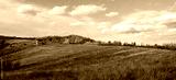 landscape with wheat field and blue sky