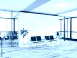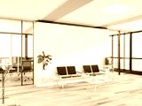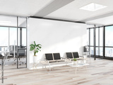 Blank white wall in concrete waiting room with large windows Mockup 3D rendering