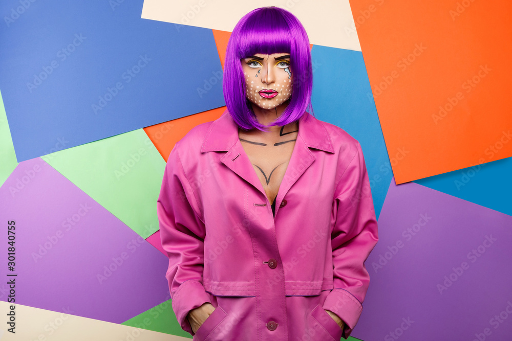Model in creative image with pop art makeup