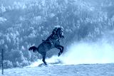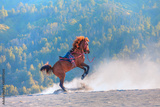 Red horse rearing up on desert - Bromo, Indonesia