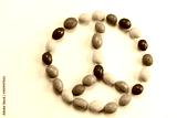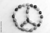 peace sign made from bright multicolored candies top view flat lay on a white background