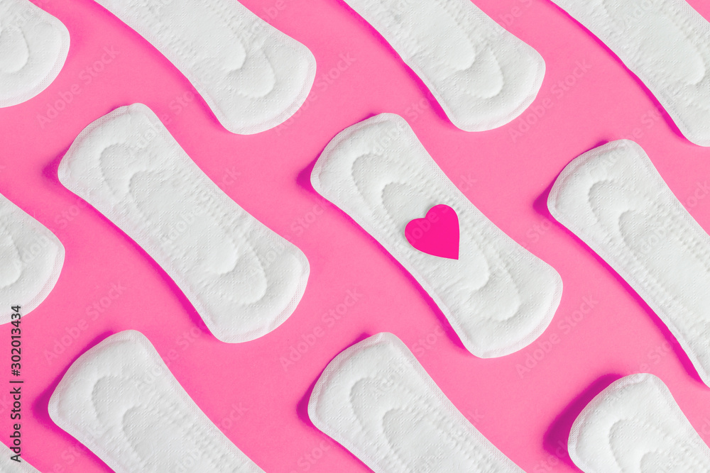 Female menstrual pads on pink background, woman's health, woman's periods cycle concept