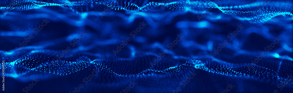 Wave 3d. Wave of particles. Abstract Blue Geometric Background. Big data visualization. Data technology abstract futuristic illustration. 3d rendering.