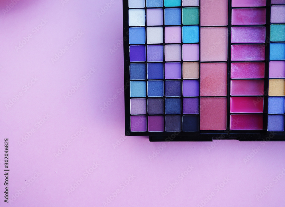 palette for shadows on a pink background, the concept of industry and beauty, women's forum, a beautiful combination for fashion