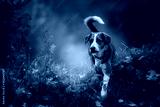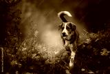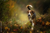 Mixed breed dog in autumn landscape