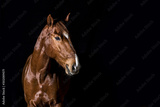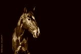 brown horse head portrait on black background
