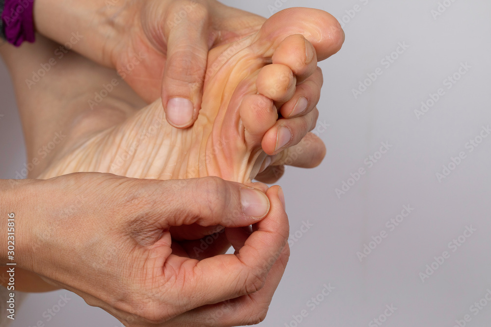 Woman holding her foot and touching toes