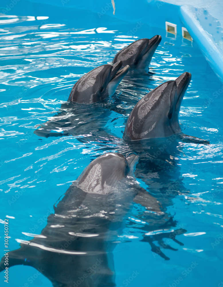 A dolphin looking up