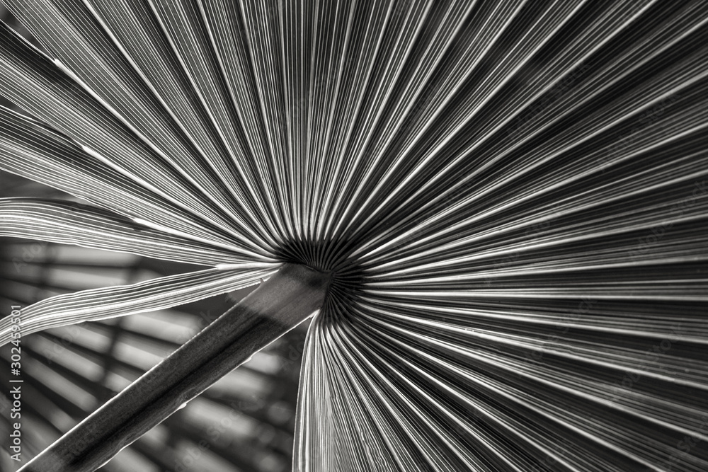 tropical monochrome palm leaf and shadow, abstract natural background, dark tone
