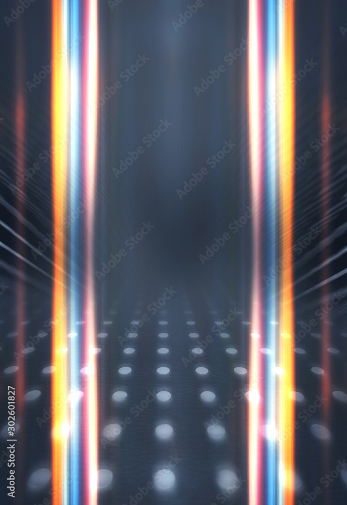 Empty dark background scene of the show. Neon ultraviolet blurry