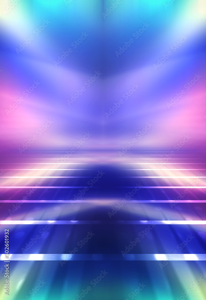 Empty dark background scene of the show. Neon ultraviolet blurry