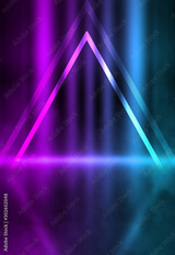 Empty dark background scene of the show. Neon ultraviolet blurry lights. Smoke, fog
