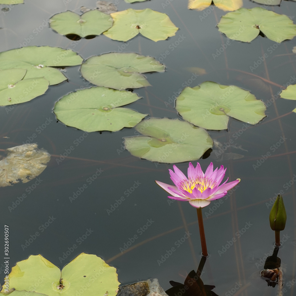 Fresh blooming purple lotus in a pond
